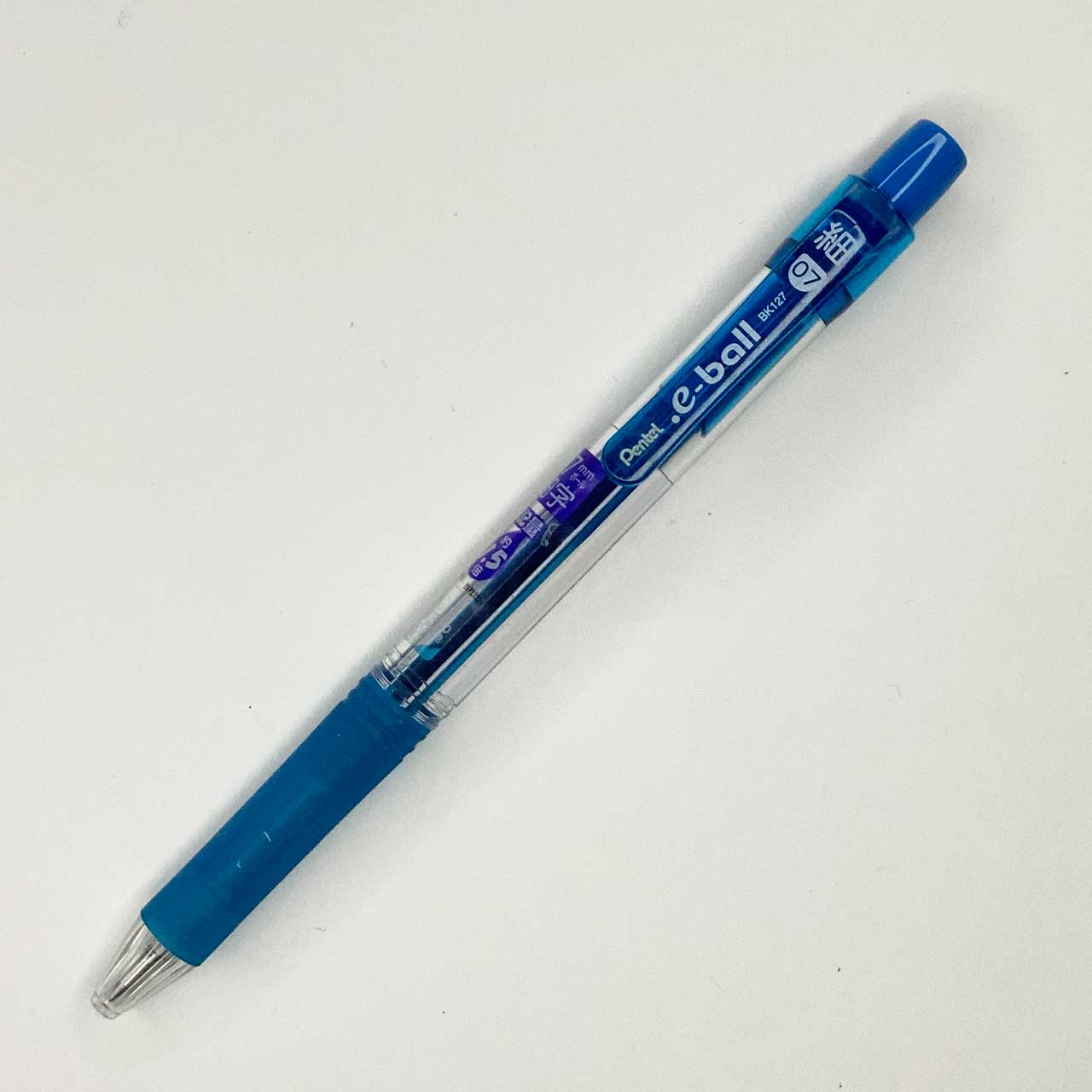 ぺんてる社製のボールペン。赤以外はグリップに透け感があります。